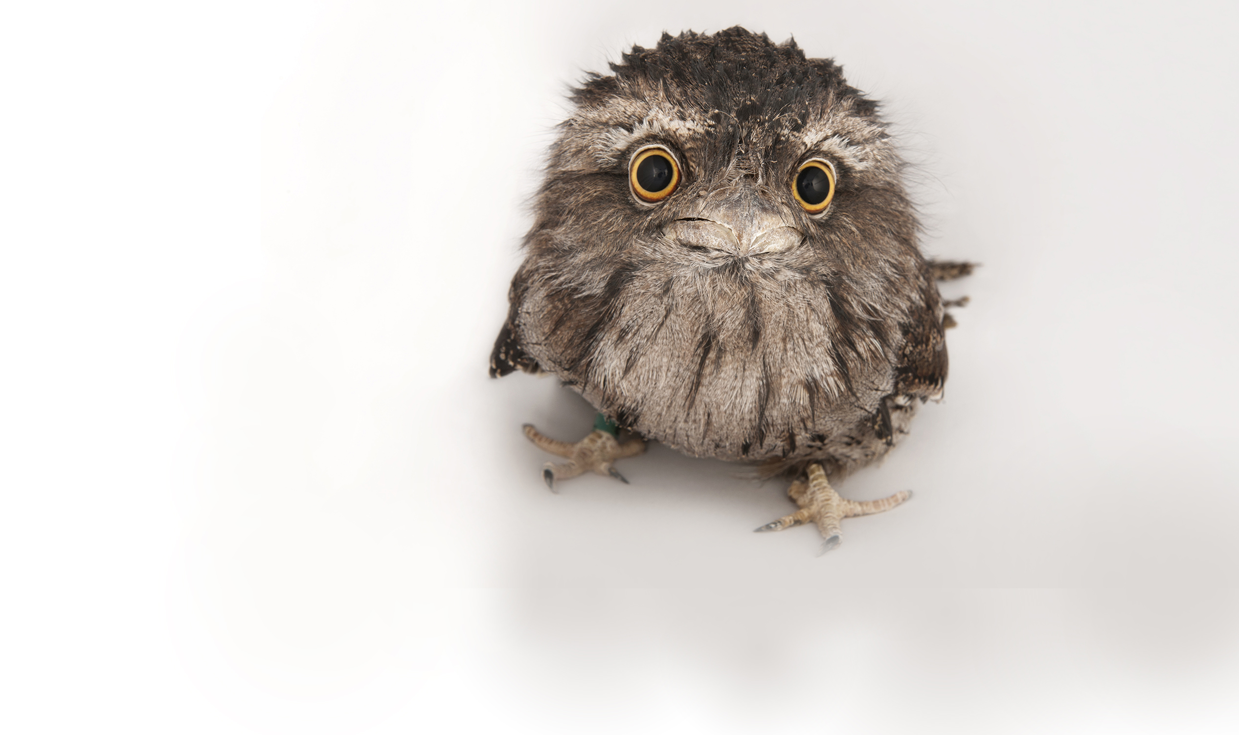 (Podargus strigoides)This bird has eyes that are large, yellow and frontally placed, similar to owls.