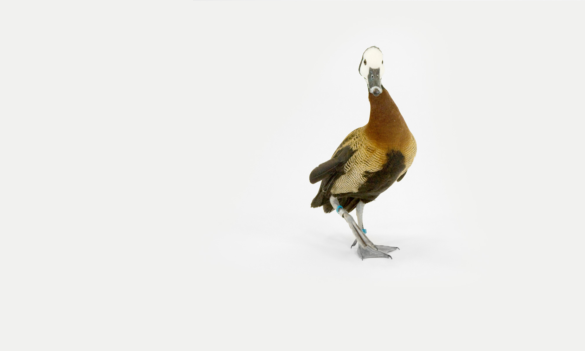 (Dendrocygna viduata)The white-face whistling duck known for their three-note whistling call are commonly found near freshwater lakes with high vegetation.